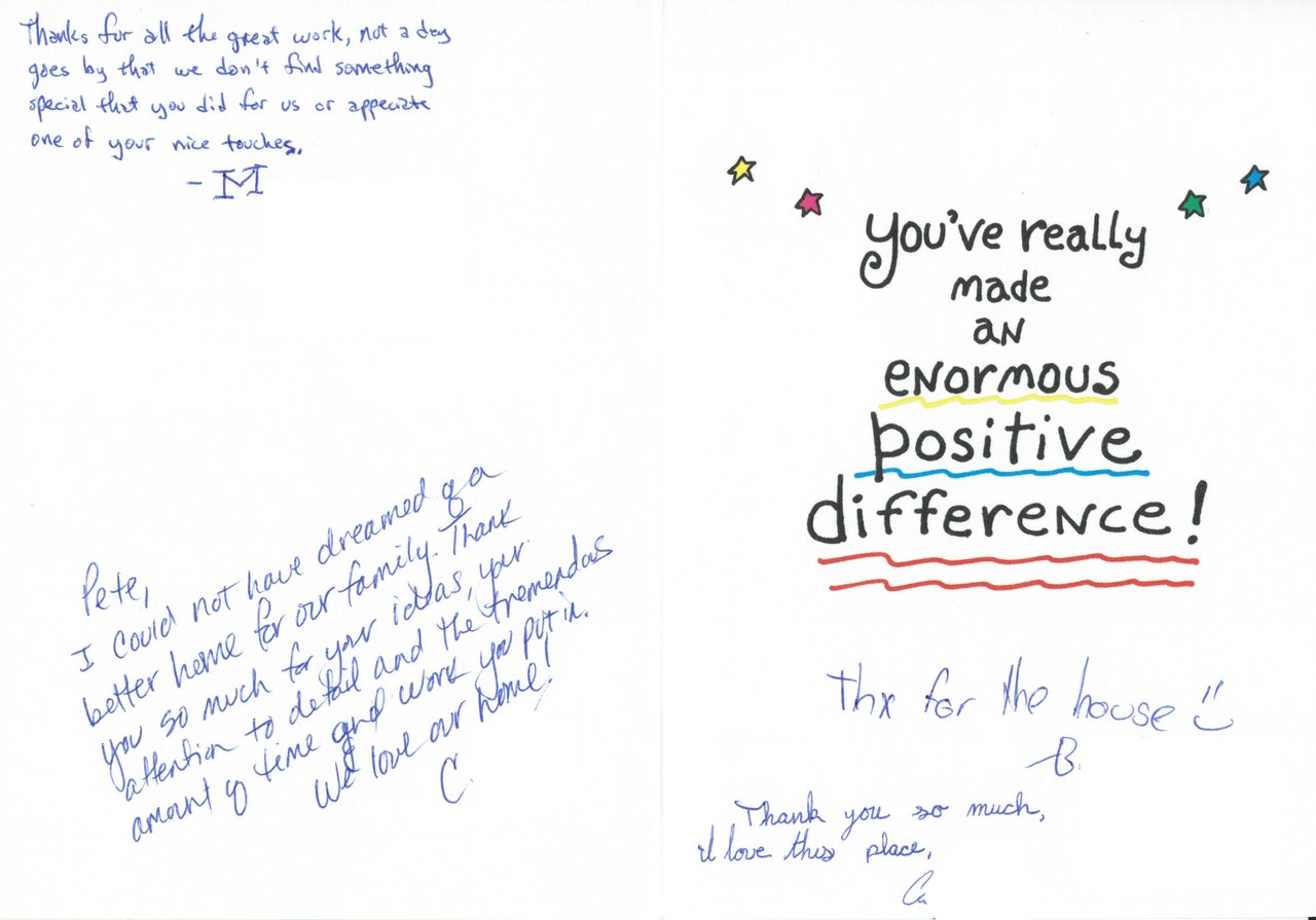 I could not have dreamed of a better home for our family. Thank you so much for your ideas, your attention to detail and the tremendous amount of time and work you put in. We love our home!